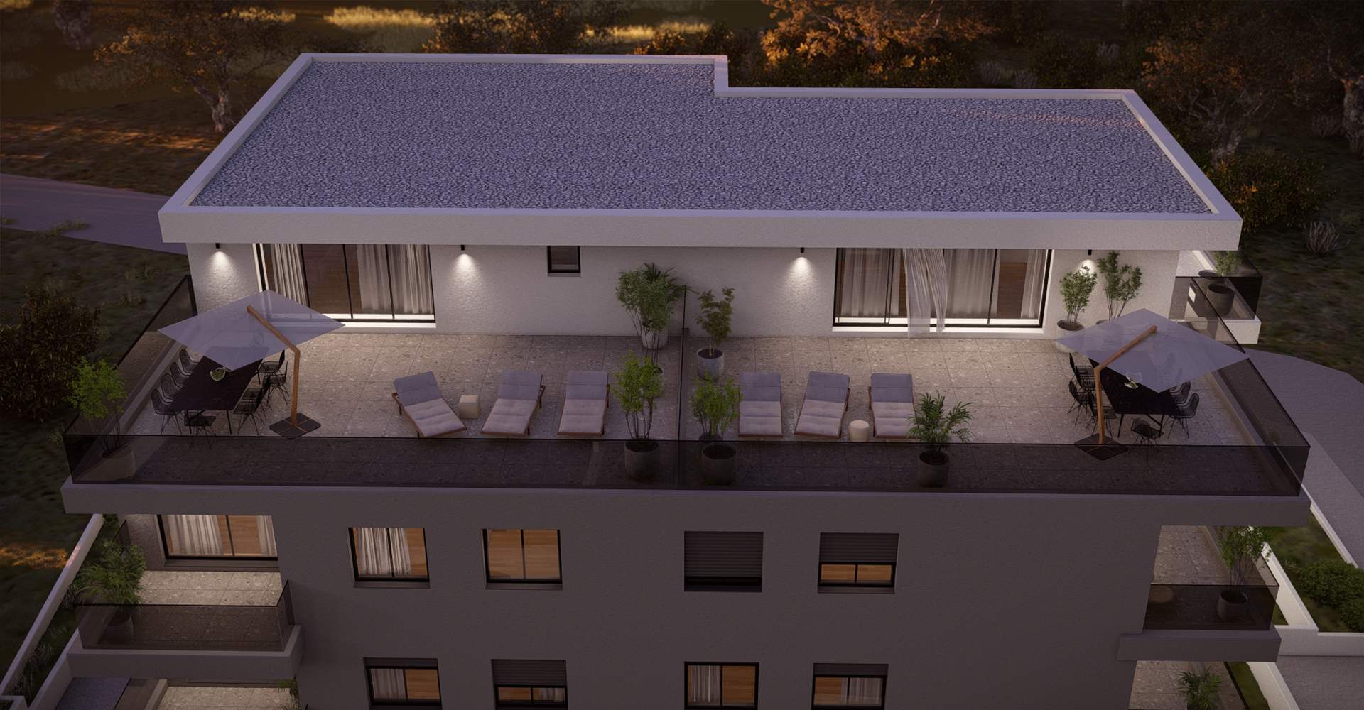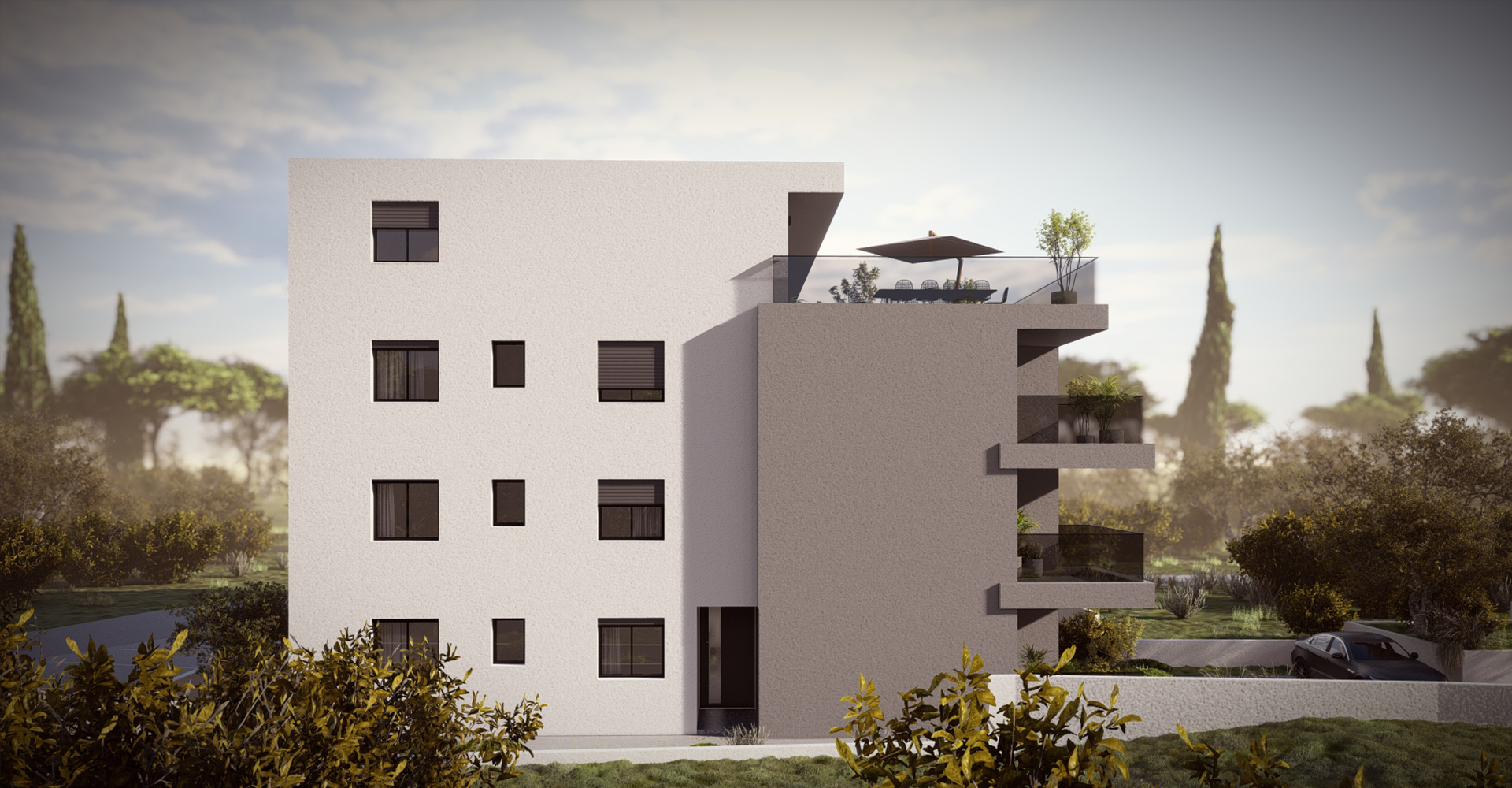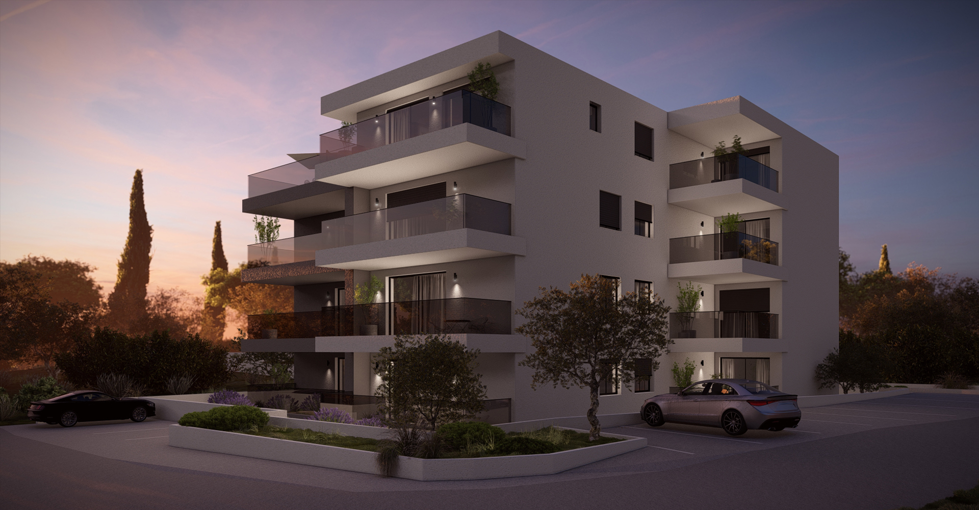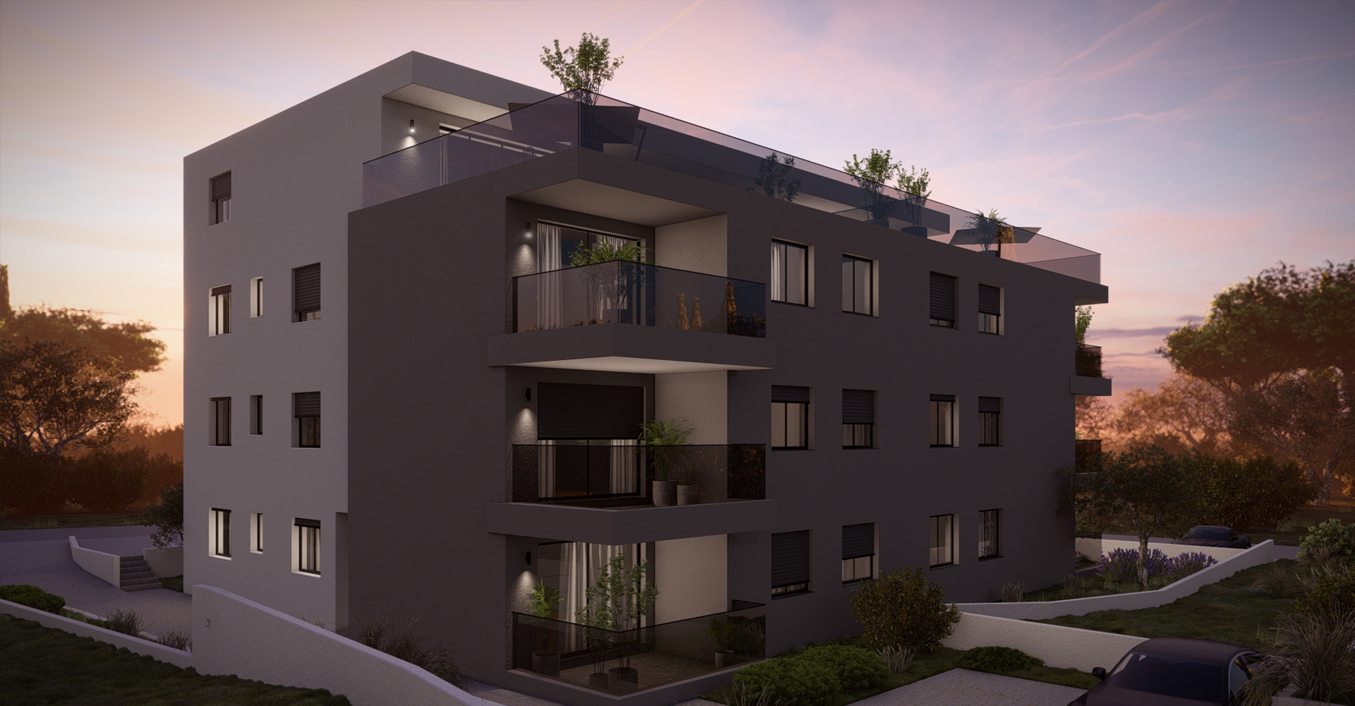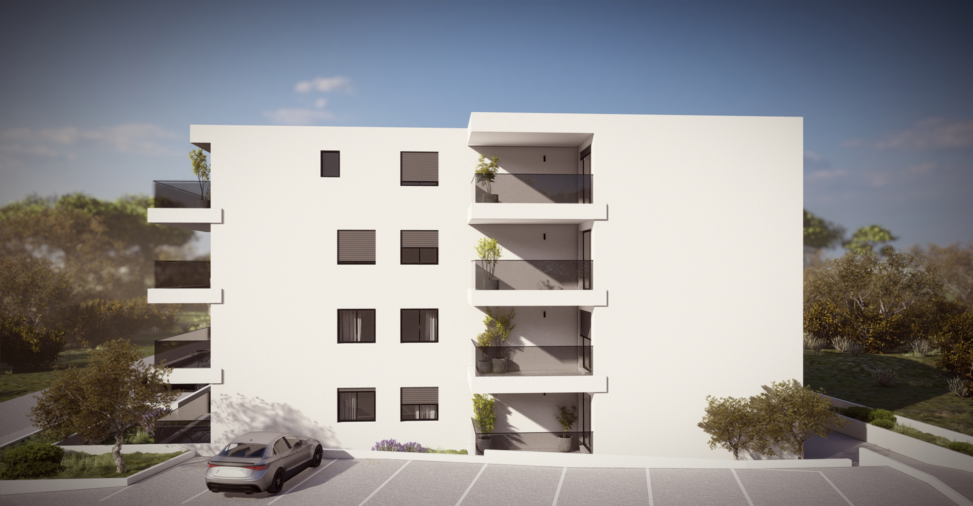 Osigurano je ukupno 14 parkirališnih mjesta, te je uz stan obavezno vanjsko parkirno mjesto.